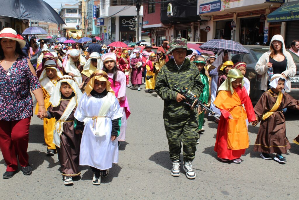 Niños, niñas y jóvenes de la Catequesis participaron activamente de esta manifestación de fe, llenando de color, música y devoción las calles de Biblián. Asimismo, se contó con la presencia de María Paula Ávila Zea, reina de la provincia del Cañar, y María Paz Campoverde, Reina Interprovincial del Ecuador.