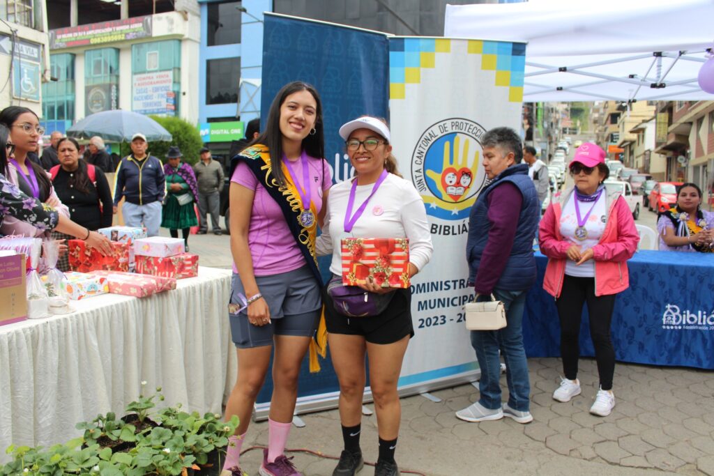 Al finalizar la competencia, se realizó la entrega de premios a las ganadoras y el sorteo de obsequios entre todas las participantes, gracias al aporte de Fundación de Damas Voluntarias, Liga Deportiva Cantonal de Biblián, Iliana Montero, Casa de la Cultura – Extensión Biblián, Biolab Laboratorio y CB Cooperativa.