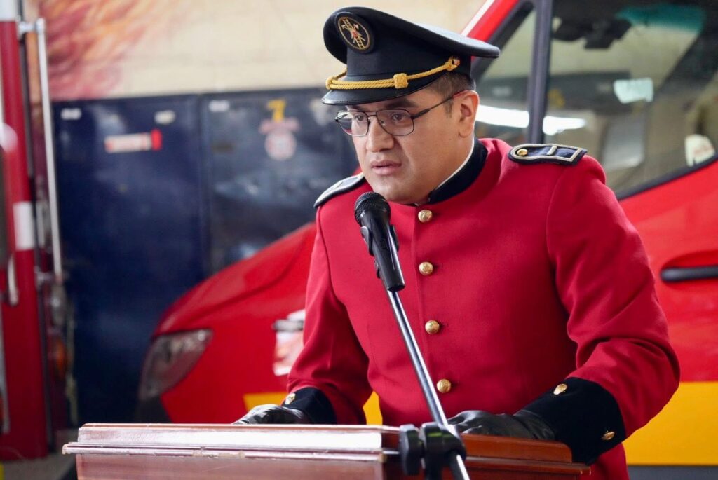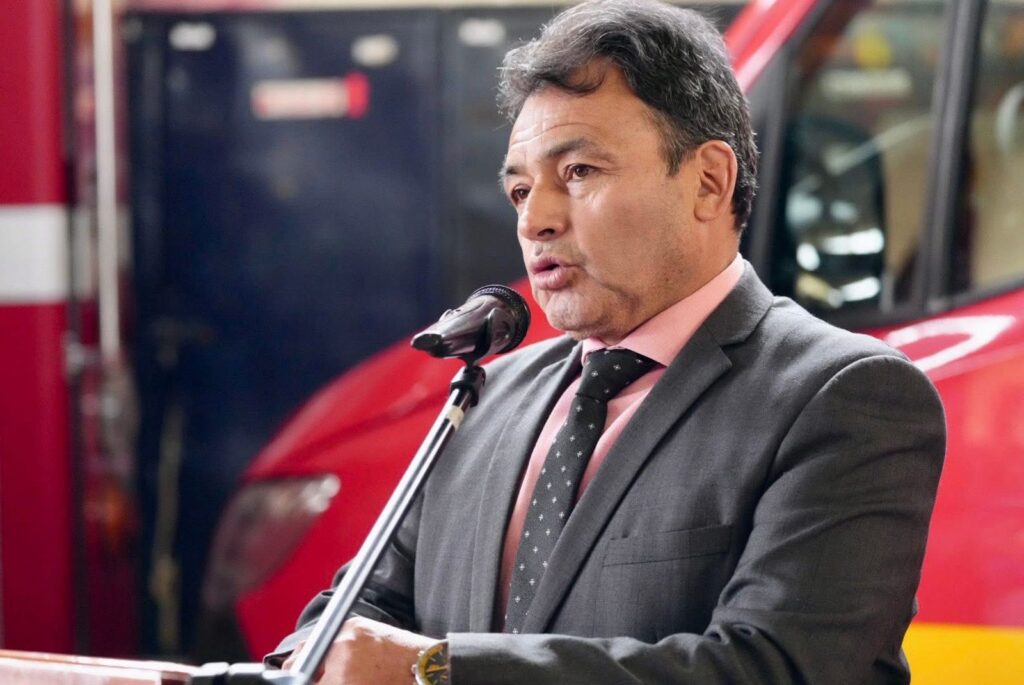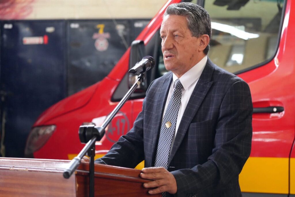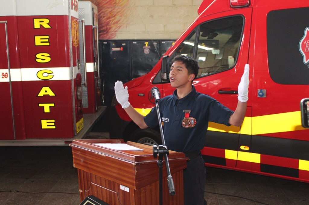Durante su intervención, el Primer Jefe del Cuerpo de Bomberos, Subt. Abg. Vinicio Tinizhañay Espinoza, resaltó el importante rol del bombero dentro de la sociedad.