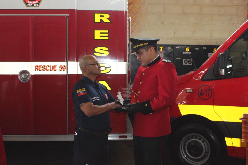Participamos en la Sesión Solemne por el Día del Bombero Ecuatoriano, organizada por el Cuerpo de Bomberos de Biblián, en reconocimiento a la valiente labor de quienes, con entrega y sacrificio, protegen la vida y los bienes de nuestra comunidad.