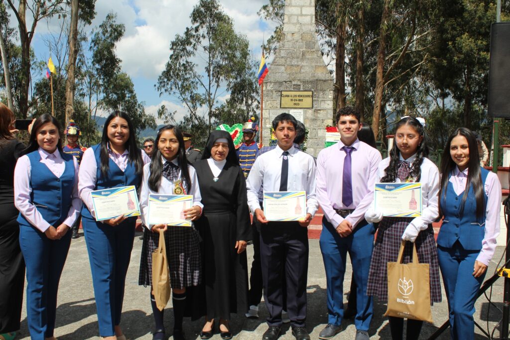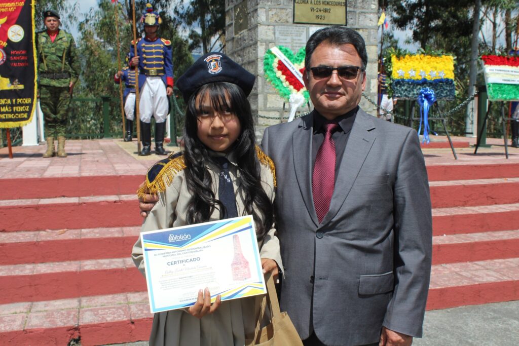 Junto al obelisco de Verdeloma, símbolo de la gesta libertaria, y con el valioso acompañamiento del Grupo de Artillería Auto Remolcado N.º 79 “General Píntag” del Ejército Ecuatoriano, se rindió un emotivo homenaje a los héroes de la libertad.